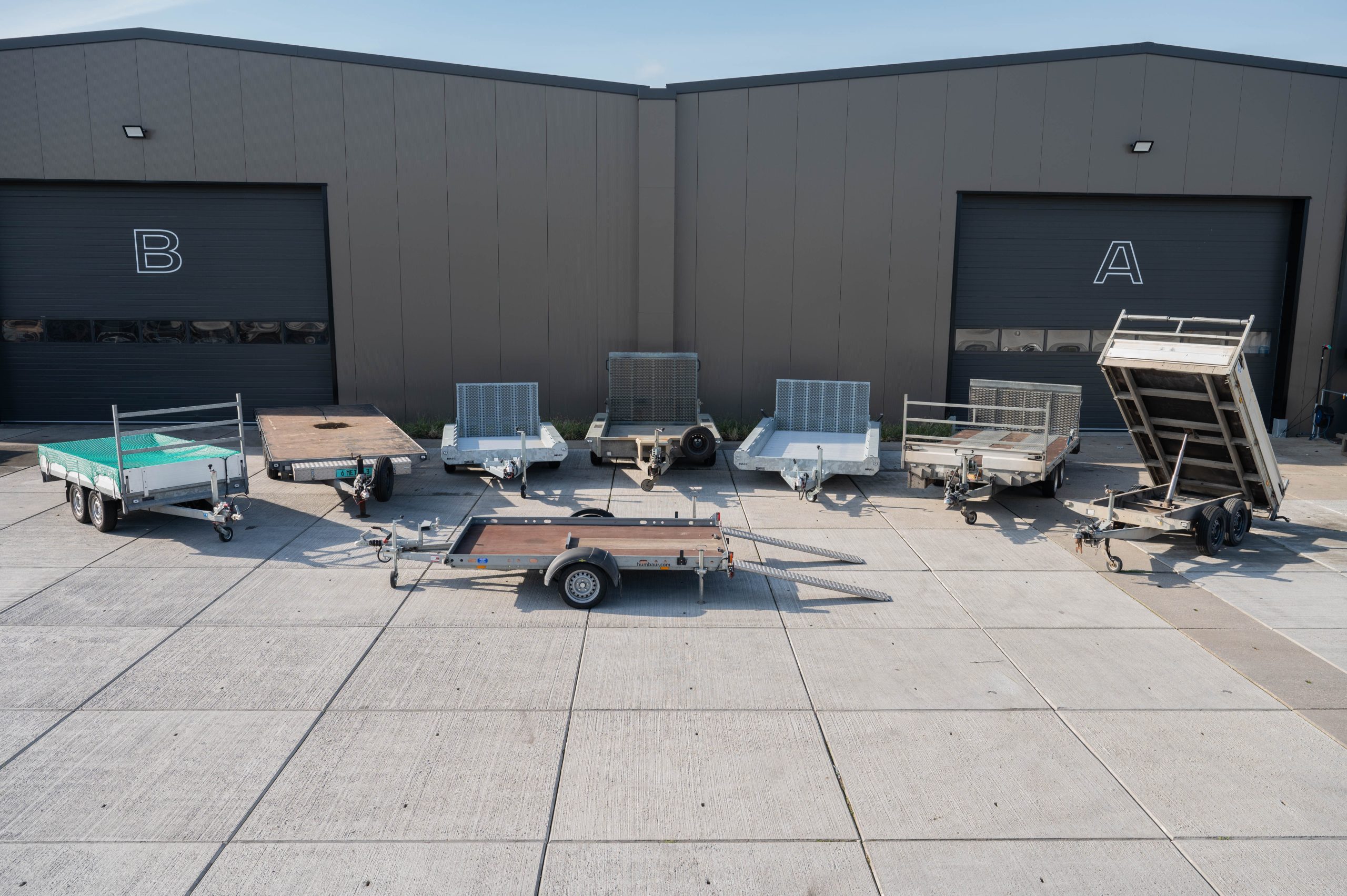 Verschillende typen aanhangers geschikt voor onder andere verhuizingen, klussen en transport van machines of materialen.
