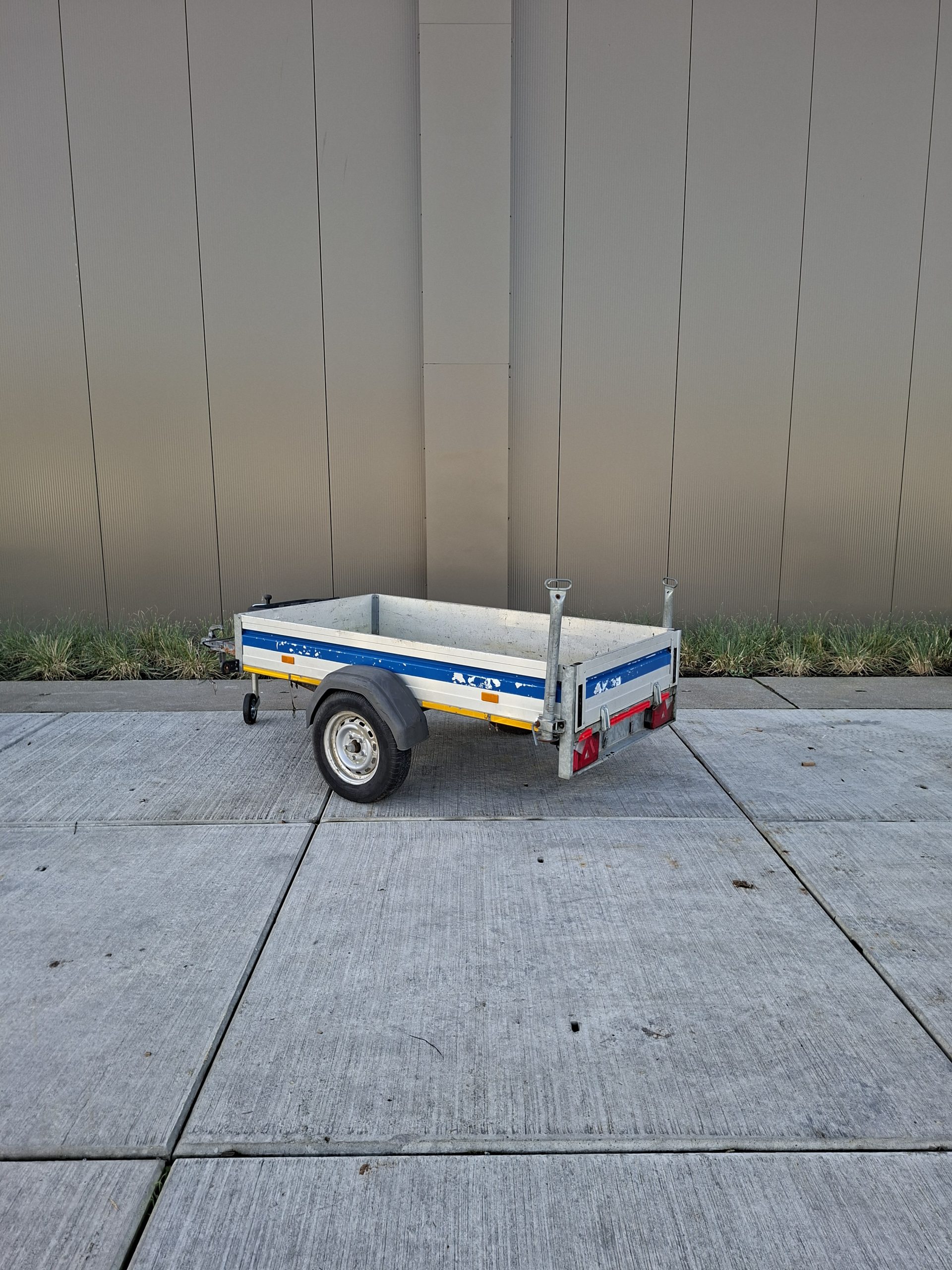 Hier zie je de aanhanger van alle kanten en in verschillende gebruikssituaties. Zo krijg je een goed beeld van het laadvlak, de afmetingen en de praktische eigenschappen. Handig om te zien hoe hij past bij jouw klus of transportbehoefte.